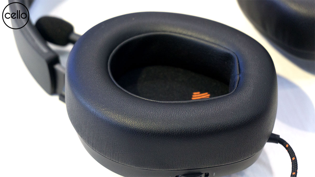 Mặt trên của headband cũng được in logo JBL, bên trong là miếng đệm bọt biển có thể mang lại hiệu quả đệm tốt và cải thiện sự thoải mái khi đeo. Thanh kim loại bên trong headband có độ dẻo dai và bền bỉ. Mặt bên của nó được đánh dấu từ 1 – 6 giúp người chơi có được độ rộng cân bằng, thoải mái nhất.